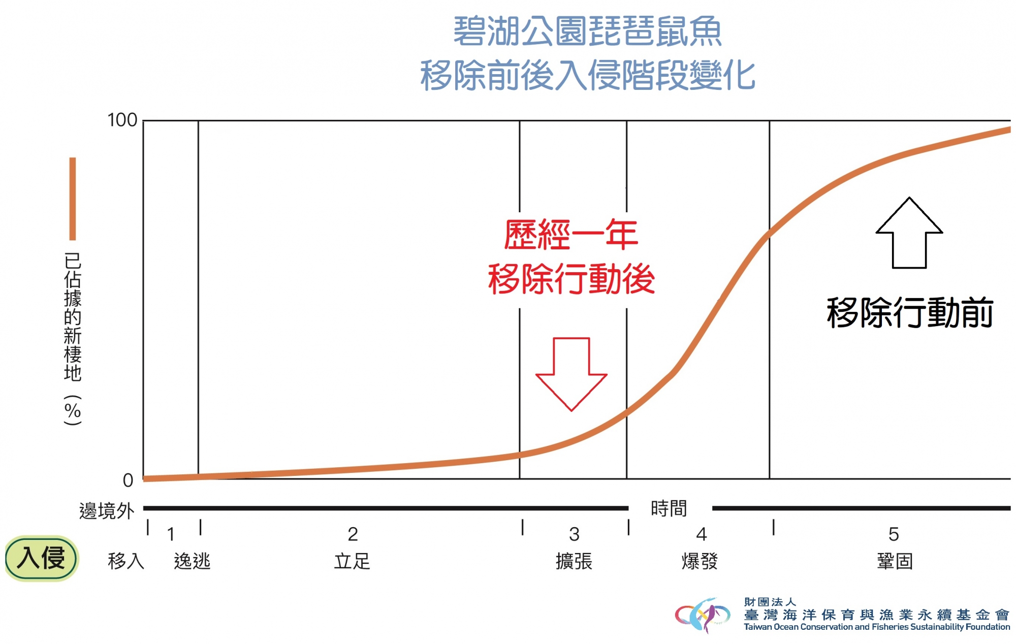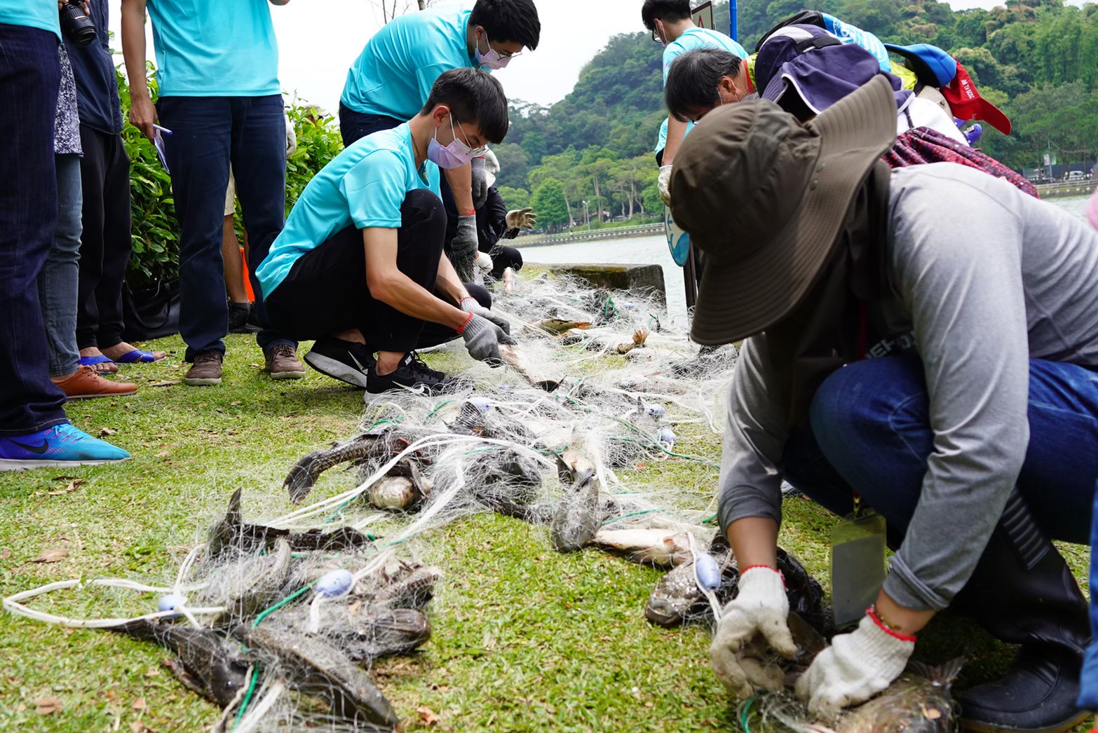 522「國際生物多樣性日」是聯合國環境署所提議保護大自然永續發揮功能的環境節日,近年來外來入侵種對各國原生生物威脅日益劇烈,台灣亦未倖免,行政院農業委員會漁業署委託海漁基金會移除水生外來入侵種,與台北市政府公園處攜手合作,針對台北碧湖公園「鼠滿為患」俗稱垃圾魚的琵琶鼠魚採取高強度移除策略,歷經整整一年行動,成果斐然,碧湖公園內的琵琶鼠魚族群數量顯著下降,入侵程度已從第五級全面佔據的「鞏固」降到第三級原初「擴張」,今年夏初在湖岸側邊初步觀察到比往年更多的小型原生種魚牛屎鯽,包括臺灣石鮒(革條田中鰟鮍)及高體鰟鮍,顯示原生生物逐漸找回生存空間,已逐漸恢復生物多樣性的生機。