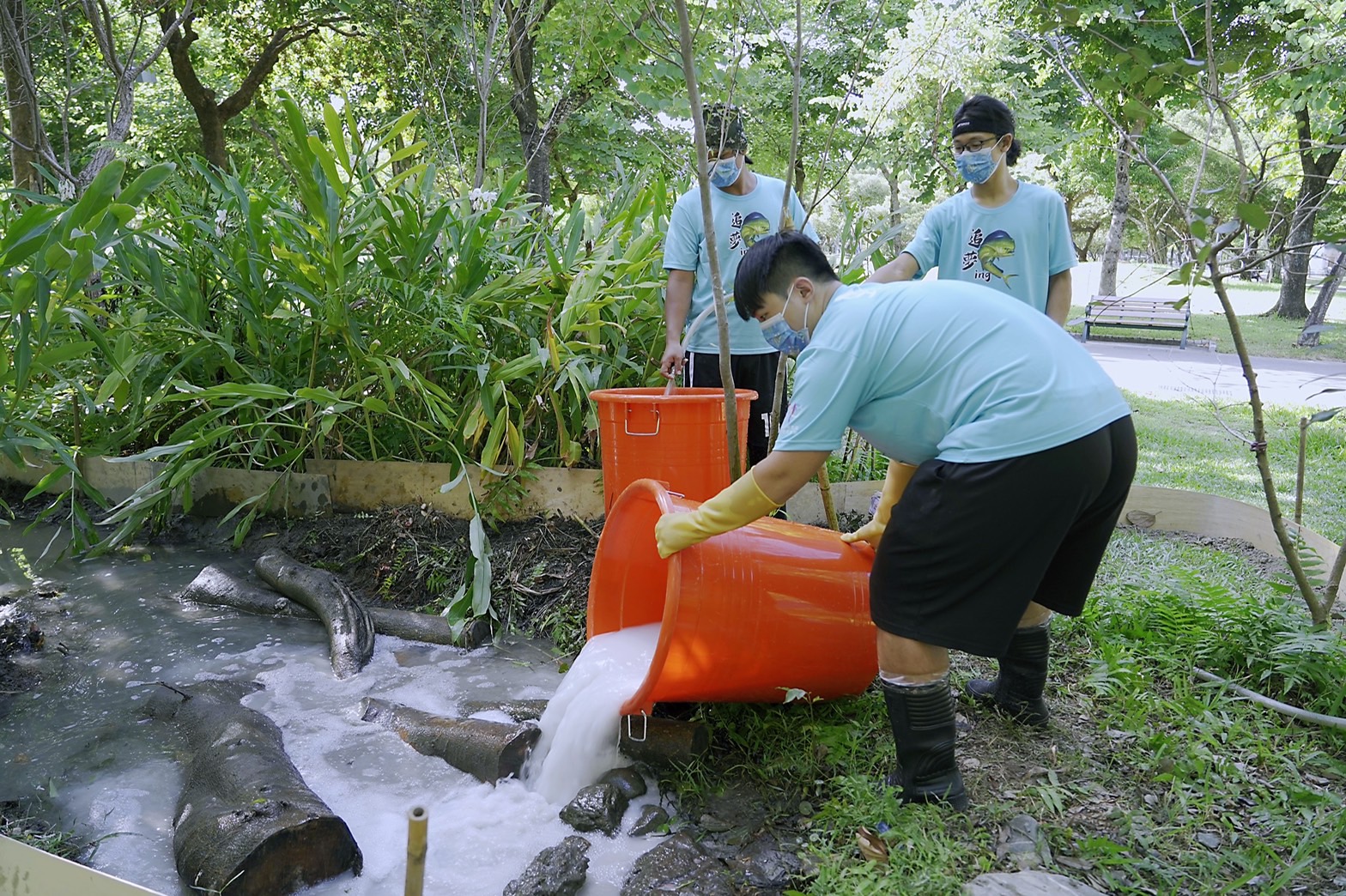 為了徹底消滅大理石紋螯蝦,避免公園的螢火蟲再次遭受攻擊,2021年9月下旬,大安森林公園團隊邀請漁業署以及海漁基金會正式加入移除工作,借重「漁業」專業視角,規劃全新的移除戰略。海漁基金會執行長林愛龍指出,本次移除計畫特點是利用螯蝦不耐鹼性水的生理特性,在經實驗確認對生態池水生植物最低影響的前提下,使用「石灰水療法」提高生態池水體的PH值,搭配木片包圍生態池周圍,以避免螯蝦逃逸至草皮上,並利用螯蝦夜行活躍的特性,於夜間加強人工捕捉來作為一個完整的療程,過程須每日監測水體與巡視。林愛龍解釋,漁業界對於整治生病的養殖池有豐富經驗,在大安森林公園之友基金會協助下,海漁基金會規劃了一個總計需實施兩輪的完整療程來達到徹底剿滅大理石紋螯蝦的目標,花費相當龐大的人力及物力。